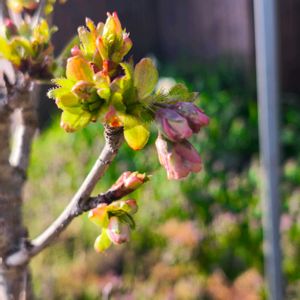 桜でまり 咲く?咲かない? 花芽はたくさんあるけれど 上手に咲けないようで。。 ずっと観察中🧐