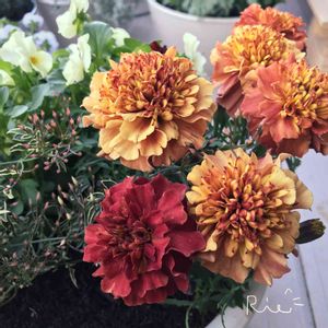 マリーゴールド ストロベリーブロンド 私が知っているマリーゴールドとは ぜんぜん違いました。 花びらの重なりがすごくて お色も複雑で とっても好みです♪