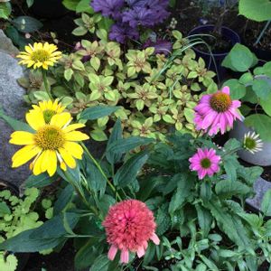 みなとみらいの花達❀.*・゚❁*。 黄色エキナセア、ジニア、アザミ、百合、紫陽花、アバガンサス、サルビア…etc