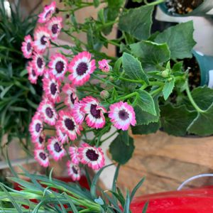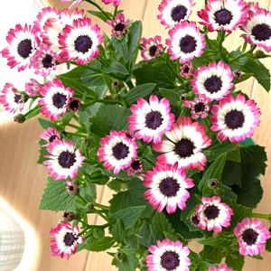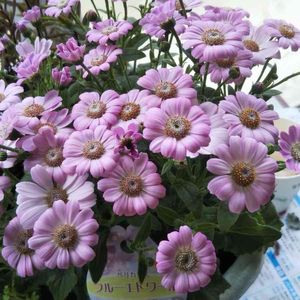 サイネリアを小さくした様なお花ですね♪ 部屋の中で綺麗に咲いてくれてます🥰 0℃〜15℃くらいの日当たりの良い場所がいいとありました。
