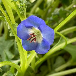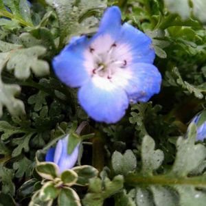 友達から5株いただいたネモヒィラの花が、一輪だけ咲き始めました。😊👍🎶