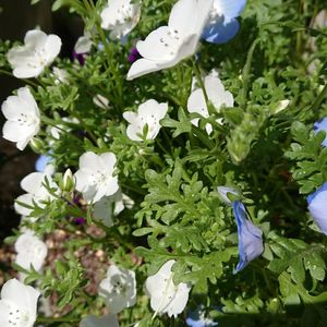 暖かい一日でした ネモヒィラがプランターで咲き揃いました① 花言葉 可憐 何処でも成功 貴方を許す
