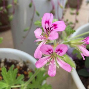 冬越ししたローズゼラニウムが元気になってきてお花も咲いて来たよ。