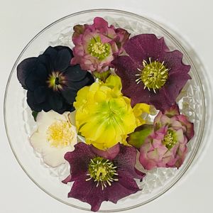 おはようございます😊 ウチに咲いたクリスマスローズたちを✂️ 花手水❓にしてみました🎶 作ったけどどこに置こうかしら。。 ひっくり返してしまう前にシリカゲルドライにしようかな。。😆