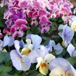 おはようございます😊 軽いフリルのパンジーさんたち💜💛💗 先月お迎えしたパンジードラキュラさんはもっとフリフリ〜💜💜 このパンジーさんたちはまとめ買いでお迎えしたので半額の半額でお迎えしたドラキュラさんひとポット分のお値段😂😂😂 でも可愛く咲いてるからいいんですよね💓