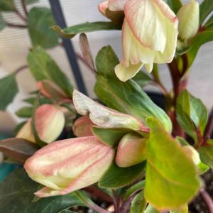 おはようございます😊 八重咲きクリスマスローズ🌸 タグをつけていなかったので開きはじめても上からしかみていなくて一重咲きだと思っていて。。 ふと下から見たら八重咲き❣️ めちゃくちゃ嬉しい〜🎶 他のクリスマスローズさんたち。。 まだつぼみのばかりですが咲いてくれるのを楽しみにしています🎶💓