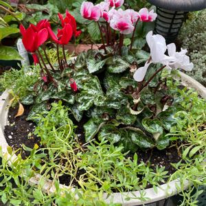 おはようございます😊 ガーデンシクラメン❤️🤍💗 夏越ししたガーデンシクラメンがあるのでこの冬はお迎えしないぞ〜❗️って思っていたのにお店のガーデンコーナーの誘惑に勝てずにお迎えしてしまいました😂💦 夏越ししたガーデンシクラメンは葉っぱが出てはいるけどお花がどれくらい咲くかもわからないし。。と自分にいい訳😅💦 先日まで千日紅と一緒に寄せ植えしていたアリッサムを周りに植えました。