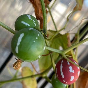 おはようございます😊 少しずつ秋めいてきましたね😊 リュウキュウスズメウリ🟢🔴 葉っぱも枯れかけてきて緑の実も赤くなりかけてきました❣️ 昨年種をいただき今年初めて育ててみました🎶 可愛い実ができてよかった〜💕
