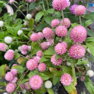 おはようございます😊 まん丸が可愛い千日紅🔴⚪️ 梅雨入り前に買った千日紅がいまひとつで今年は諦めていたのですが。。💧 先日ワンコ🐶の餌を買いに行ったホームセンターでひとポット50円になっていた千日紅🎶 2ポット買ってきちゃいました😂 これで今年もドライにして楽しめるかな🎶😆