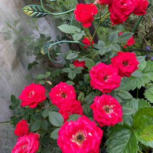 おはようございます😊 名前もわからないミニバラ🌹 たくさん咲いてます🌹🌹🌹 数年前に赤・黄・ピンクのミニバラの寄せ植えをお迎えしてその後それぞれひと鉢づつに植え替えて。。 ピンク・黄のミニバラは数輪しか咲かないのにこの赤いミニバラは枝葉も広がり花もたくさん🌹🌹🌹 何が違うんだろ〜❓ と思いながら楽しんでいます🎶🌹