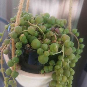 グリーンネックレス、引っ越してからずっと外に置きっぱなししていたら状態がどんどん悪くなりました😥 色が緑からくすんだ色になってきて、形もまるじゃなくなって水あげても戻らなかったので屋根のある、直射日光の当たらないとこに移動! そうしたらきれいな緑に戻ってきて丸の形も整ってきました😃