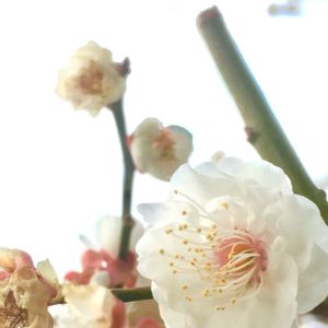 町田天満宮の梅が見頃 梅の花蜜を求めてやってきたメジロが翔んできてます。 町田市の梅の名所 「塒出錦(とやでにしき)」「蝶の羽重ね」「思いのまま」など様々な梅が植えられ、春先まで楽しめます。