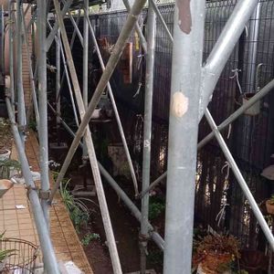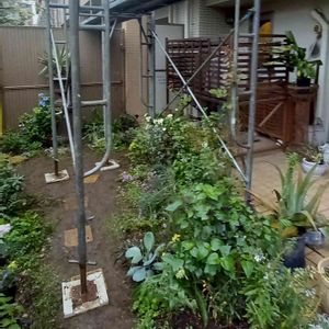 ついに来た。 工事の人達、 かなりいろいろ気を使ってくれました。 脚が接地される部分の植栽は、 移動する時間を頂きました。 でも最初に来た人は、 踏み潰してもいいですよねっていう感じで話進めたから、 すごい焦った(^-^;