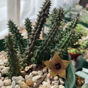 約一ヶ月ぶりの投稿です♡😊 団地の修繕工事が始まって、ベランダの 多肉たちも みんな 室内なので 元気がなくて 私も気分が下がり⤵︎気味〜🥲 なんですが、今朝 窓際のガガイモさんに 花が咲いていました⤴︎⤴︎😍 つぼみが しばらく大きく膨らんでいたので 楽しみにしてました♡ 嬉しくって 久しぶりに投稿しました〜♬😍