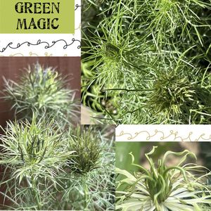 グリーンのモシャモシャ これはニゲラのグリーンマジックです。 突然変異で誕生した花びらのないニゲラだそうですよ。 昨年購入しなくて後で後悔した子。 花後はぷっくりと実ができて、これもまた可愛い😍🟢 ↗️ 入荷時は見向きもされません。 ⬇️ 少しホワイトが出てくると売れ始めるそうですよ。