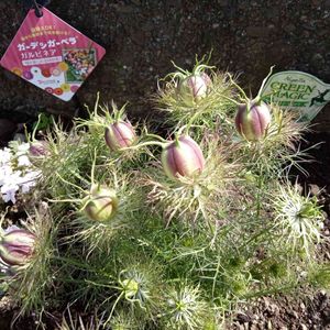 昨日見つけたニゲラ 色んな花の苗に埋もれてて珍しかったので買ってみた☺️ 新しい品種みたいですね。知ってる人は知っている知らない人は素通り。 種が取れたらいいな きっと来年は人気で買えないかも🤫