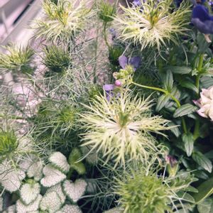 ジャノメエリカ ニゲラ グリーンマジック ボロニア ピナータ 何かグリーンな寄植えが出来上がり💚💚💚