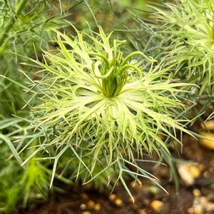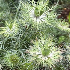 花弁のないニゲラ グリーンマジック。 これはもう開花?種も膨らみ始めてるのか? 全身緑一色です🌿 いつもはオルレアのこぼれ種があちこちから出てくる我が家の庭は今年はオルレアは全く出ずニゲラ(たぶん)のこぼれ種がいっぱい🌿 どの種類かわからないけどたくさん咲いてくれたら嬉しいなぁ~