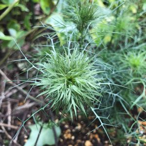 ニゲラ グリーンマジック💚 蕾状だった丸い部分がほどけてきました。 上から見ると蕊が見えます。 説明通り花びらがないので、不思議な感じ🌿 どうやって種が出来ていくのかしら。