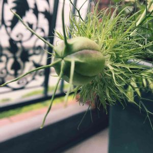 ホームセンターをのぞいてみたら初めて見る緑のニゲラを発見! 498円と少し高めだったけど興味津々で購入した。