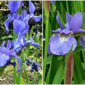 これは、カキツバタ(杜若)とアヤメ(菖蒲)です。 湿地に咲く白い線があるカキツバと、乾燥した土地に咲く網目模様があるアヤメは、遠くから見ると区別がつきにくいです🌼 「いずれアヤメかカキツバタ」と言われる由縁ですね😃