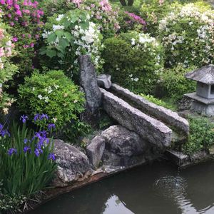 京都洛北 岩倉の妙満寺 山門前には池もあり ツツジと杜若も 素敵でした💕