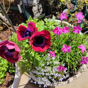 ✨寄せ植え✨ ①アネモネ 極 本当の色が見ていただけ無いのが残念です。 とても鮮やかで素敵な色のアネモネです。 ②ヒナソウ 夏越しは難しいですが可愛いお花です。 ③ナデシコ ほのかな香りがするナデシコです。長く楽しめる優秀なお花です。