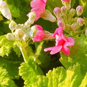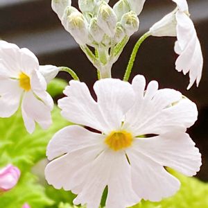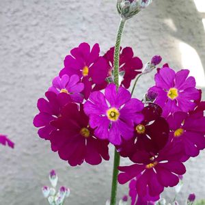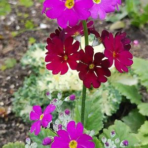 耐寒マラコイデス サクラソウ科サクラソウ属の一年草(本来は、多年草だが、通常、暑さで絶えるため一年草扱いをされる) プリムラの仲間 病虫害が少なく、丈夫で育てやすい。 別名:オトメザクラ(乙女桜) 去年10月に、買ったポット苗を庭に植えました。白▪ピンク▪赤の3色の色ちがいを1本ずつ… そのうちのひとつの株から、2色の花がσ(^_^;)? 咲き始めました。