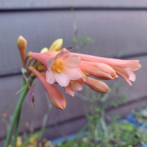 キルタンサス 大寒の日もサーモンピンクの花を咲かせつづける