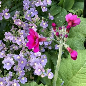 クリンソウ(多分🤔) 花の咲く年と気づかない年とあって--- 後ろは マイドのネメシア 左後ろはアルストロメリア