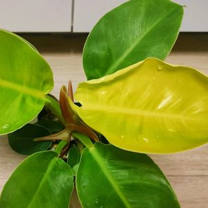 フィロデンドロン インペリアルゴールド の新芽 結構成長早い気がします 先月と合わせて新芽3回目 新葉のライムグリーン色の葉が綺麗ですよね😄