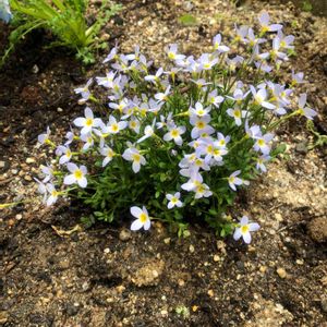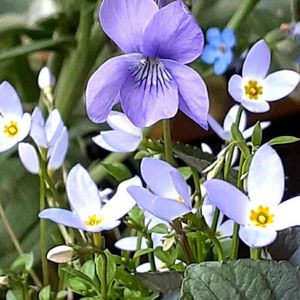 今日のお庭 ヒナソウが、可愛らしい 黒葉スミレとの 小さな寄せ植え