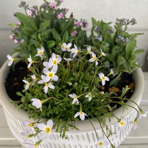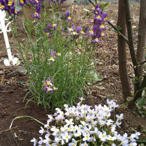 薔薇の木の下にリナリアと頂いたヒナソウを植えました💕✨ ヒナソウって初めてだけど可愛いかも😁