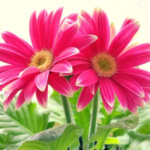 窓際のガーベラ❗ 窓際に赤い花が❤️❤️❤️😳 いつの間にか、また私の知らないうちに鉢植えが一つ…😅