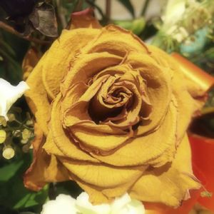 アレンジメントされたまま ドライになっていた一本の薔薇 美しい芥子色 元の色は何色だったのかは判らないけれど 首が萎れることなく凛としたまま素敵に…