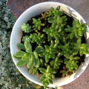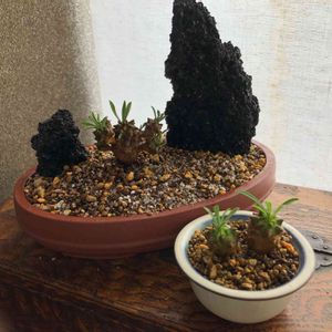 ユーフォルビア峨眉山の株分け。 奥の親株から2個だけもいで4カ月 親株に大きさが近づいてきています。 子株ができると嬉しい😸