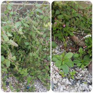 第2花壇予定地に生えているシソと3時草 植木が枯れるのを待っていたらいつの間にか草だらけになってました 今まで雑草1本生えなかった場所でも、少し掘り起こしておくといつのまにかなんかしらが生えてますよね~ 早く第2花壇も作りたいけど根っこが頑丈で😅 誰か引き抜いて~