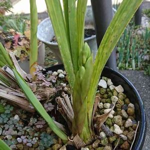 シンビジウムの蕾が上がってきました。 奥のシュッと伸びたのもシンビジウムの蕾です😅
