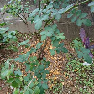 ノイバラを玄関前に植え替えました😊 裏庭に鉢植えでしたが鉢を突き抜け地面に根付いていました😂 誰が最初に置いていたのでしょうか?お義母さん?だと思います😅