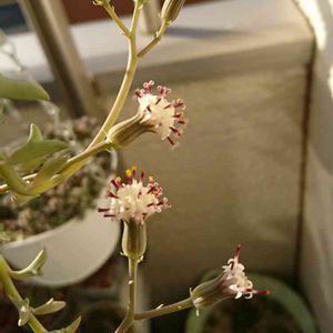 ドルフィンネックレスのお花がアップで撮れました🐬 あまり可愛くないお花だなぁと思ってましたがこう見ると可愛いよーな😅 これが今20コくらい咲いているのでイルカちゃんより目立っちゃってます💦💦