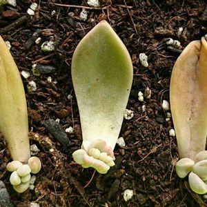 以前チョンパした星の王子★ やっと切り口から新しい葉っぱが出てきたと思ったら、下からも出てきた! 下の子達はこの先どうなっていくんだ?