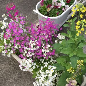 こんにちは😊 昼間は暑くなりました。 ビオラの花🌸種蒔きしたのがなんとかお花が咲きました。三陸菜花のお花 サクラソウ🎶
