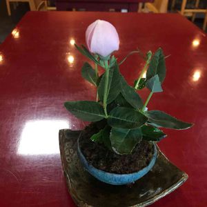 弁慶鮨のテーブルに飾られていた可愛いお花.。.:*♡ ポンっと咲いたらもっと可愛いでしょうね〜💕 ピンクの桔梗︎💕︎苔︎💕︎こんなアレンジも素敵ですね° ✧ (*´ `*) ✧ °💖