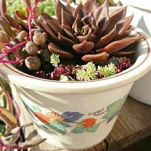 「ご自由に御持ちください」 と置かれていたレトロな鉢を頂いて寄せました。
