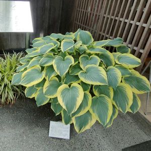 山形県寒河江市の農家の畑で食用ギボウシを栽培中に見出されました。 🍀☘️大きな葉に鮮明に綺麗な覆輪が入る。 サガエギボウシです。