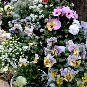 こんばんは😊 7.5℃☀️ ずっと入荷のタイミングと合わず 会えなかったレディ ようやくお迎えできました 1ポットの中にいったい何色入っているのか😍 やっぱり魅力的なビオラです✨