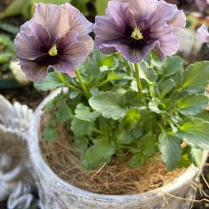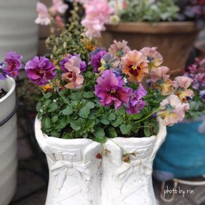 寒さと強風に耐える日々が続きます🍃 晴れの日の陽射しの暖かさが嬉しい☀️ ①君待ち 素敵な色になりました✨ 黄色と紫の2色咲きだったのが、綺麗に混ざり合ったみたいです💛💜 ただ…首が短い😂 寒さのせいかな💦 一緒に植えた寄せ植えのレディに追い越されました😅 ②ビオラレディ 君待ちと最初はよく似たカラーだったのでお隣に植えました🌱 どんどん育って背丈も伸びて、オシャレな色になりました💕 ③寄せ植えの全体像の一部ですが… 実は主役の神戸べっぴんさん 美織音 寒さでシワシワでお花がどんどんなくなっています💦 日当たりは抜群❕風当たりも抜群… 場所変えてあげたいけど、もうしばらく頑張ってください😣💦