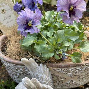 こんばんは🌃 寒いですね〜🤍🩵 朝は氷が張っています~😅🩵🩵 昨日、近くのHCで、ビオラレディに出会いました〜💠🌼🤭🎉🎉 レディのラベルを見ただけで興奮してしまい、5株も買ってしまいました〜💨💨 3株手持ちが有るのに・・・バカね〜🤣⤵️⤴️⤴️ もう1株有るのですが、植え付け時、花首を折ってしまったのです😅 その1株は、茶系(赤系)でフリルのゆる〜いお花で、春にどの様に色変するのか気になって購入〜😁 そして、1週間前に、横浜セレクションの金茶とフレアブルーに出会い、当然のようにお持ち帰り〜💦😆💙💜 今年は、これで最後にしましょう~✌️ そんな事言って、大丈夫かしら💨🤭 絶対、昨年より、お花が増えているような気がする〜🌪️⤵️😅 まぁ、良いと言う事で〜〜😉💠🌼🎉