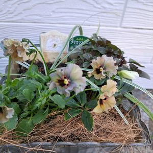 【ビオラの寄せ植え】(植え付け記録) 『レディ』さん 寄せ植えにしました😊 花首長くてナチュラルなイメージなので アイアンカゴ寄せにしてみました。 🧺←こんなカゴだったらもっとナチュラルになったかも〜😅 空いてなかった…💦 沢山咲いてくれますように❣️ もう1株はお一人寄せ植えに😊 [寄せ植え素材] 『アリッサム』 『ヘデラ 雪の華』 『リシマキア オーレア』 『オリヅルラン』 『斑入りリュウノヒゲ』 『リシマキア ミッドナイトサン』 『コニファー』 過去のレディさんは 下にある 【❀すず❀レディ】のタグをポチッとすると見られます😊