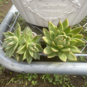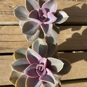 おはようございます🌞 ①パールフォンニュルンベルグ 親株さん子株さん💜 ②トラカラー🩷 カリカリになってしまいました😓 ピンクの新芽がたくさん🌱 ③斑入りセリ.フラミンゴ🦩 株分してパンジー、ビオラと 植えたりと増殖中です😄